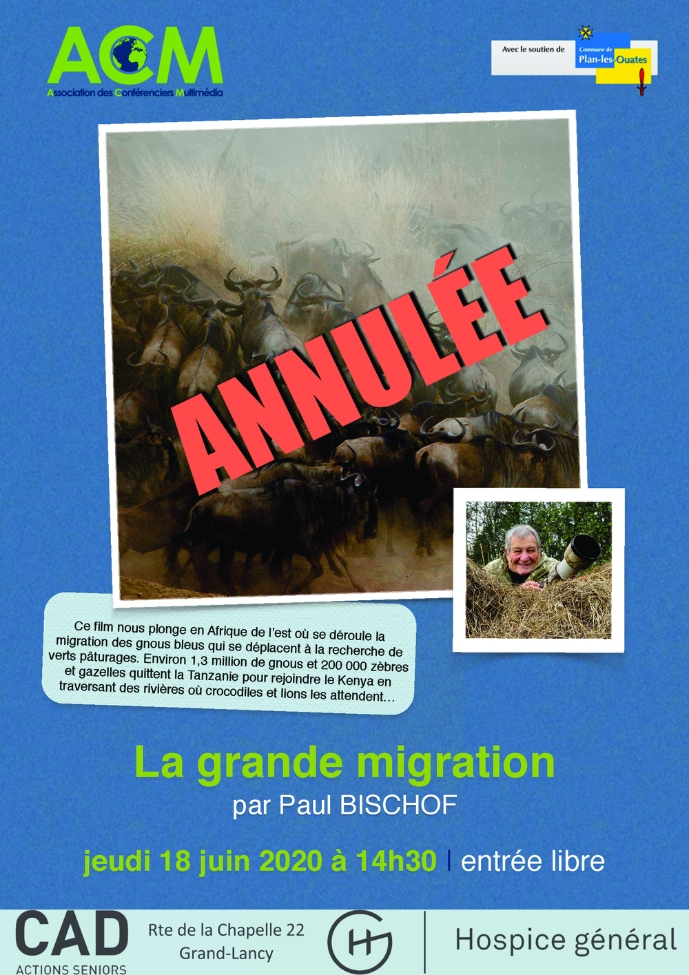 Ce film nous plonge en Afrique de l’est où se déroule la migration des gnous bleus qui se déplacent à la recherche de verts pâturages. Environ 1,3 million de gnous et 200 000 zèbres et gazelles quittent la Tanzanie pour rejoindre le Kenya en traversant des rivières où crocodiles et lions les attendent… FILM