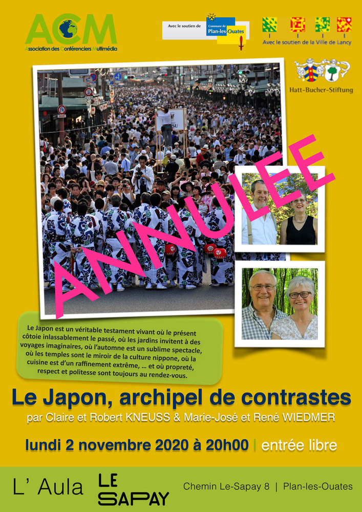 Le Japon est un véritable testament vivant où le présent côtoie inlassablement le passé, où les jardins invitent à des voyages imaginaires, où l’automne est un sublime spectacle, où les temples sont le miroir de la culture nippone, où la cuisine est d’un raffinement extrême, … et où propreté, respect et politesse sont toujours au rendez-vous. MAXIMUM 50 PERSONNES.