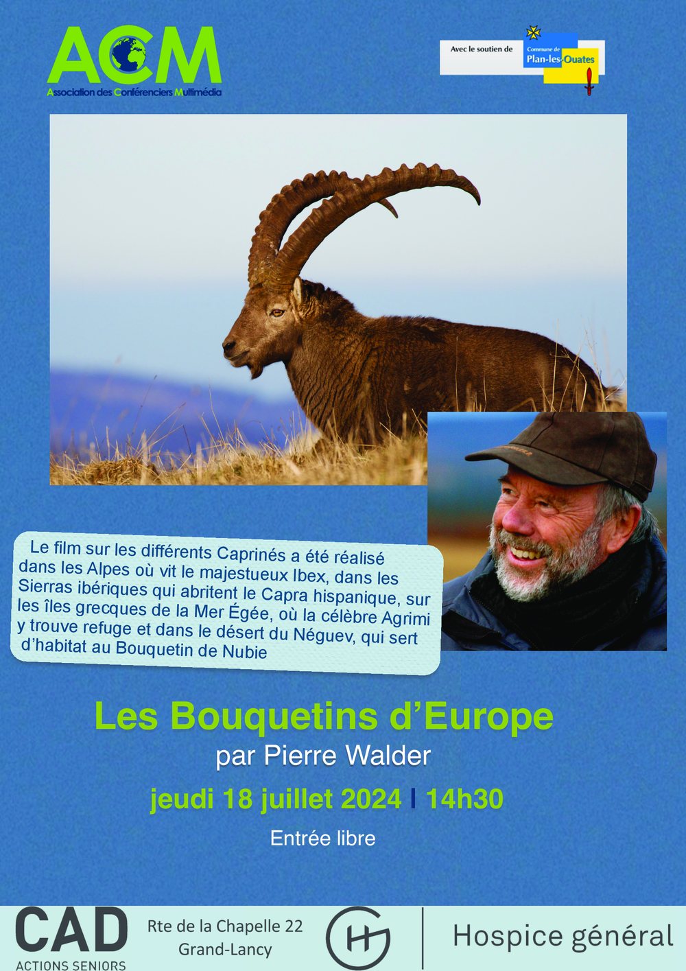 Le film sur les différents Caprinés a été réalisé dans les Alpes où vit le majestueux Ibex, dans les Sierras ibériques qui abritent le Capra hispanique, sur les îles grecques de la Mer Égée, où la célèbre Agrimi y trouve refuge et dans le désert du Néguev, qui sert d’habitat au Bouquetin de Nubie