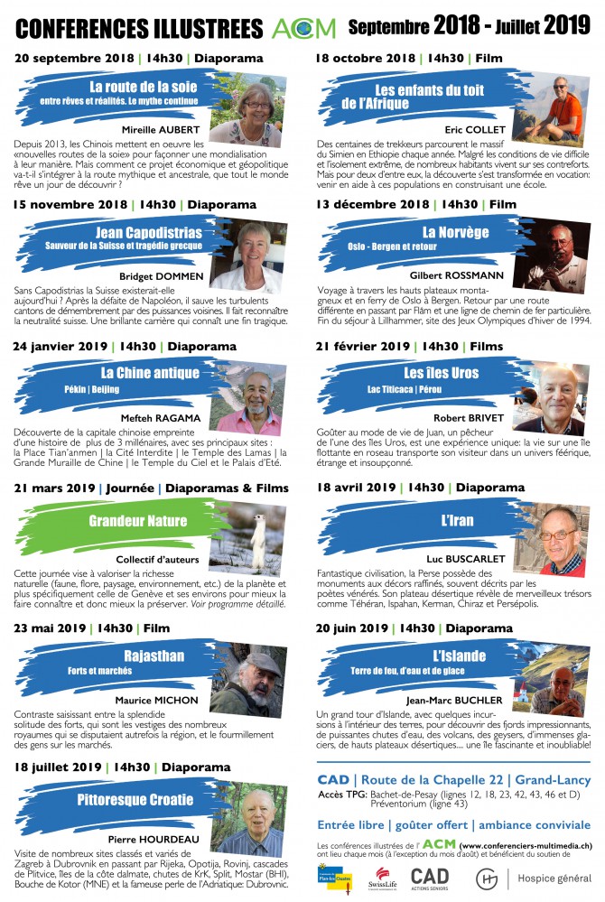 Programme des conférences illustrées et de la journée à thème durant la saison 2018-2019