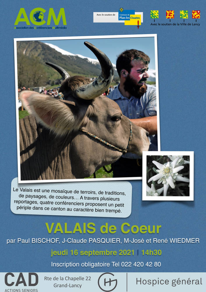 Le Valais est une mosaïque de terroirs, de traditions, de paysages, de couleurs… A travers plusieurs reportages, quatre conférenciers proposent un petit périple dans ce canton au caractère bien trempé.