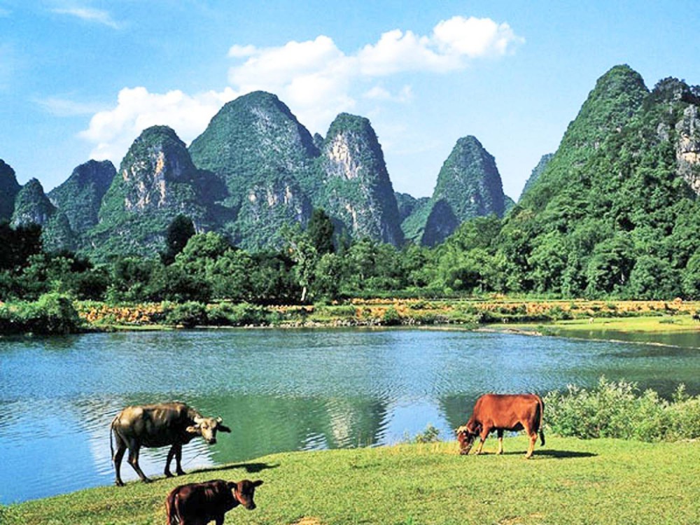 le village de Yangdi, randonnée sur la rivière Li, Le village Yangshuo,, les pagodes du soleil et de la lune ,le village de Wuzhen le village Suzhou ,le Bund de Shanghaï