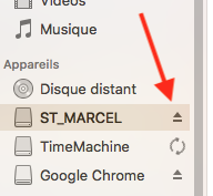 Si vous utilisez votre carte en mode écriture dans votre ordinateur, n'oubliez pas d'éjecter la carte avec le bouton "EJECT" dans le Finder comme le montre le schéma.